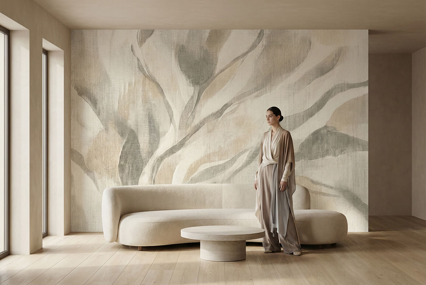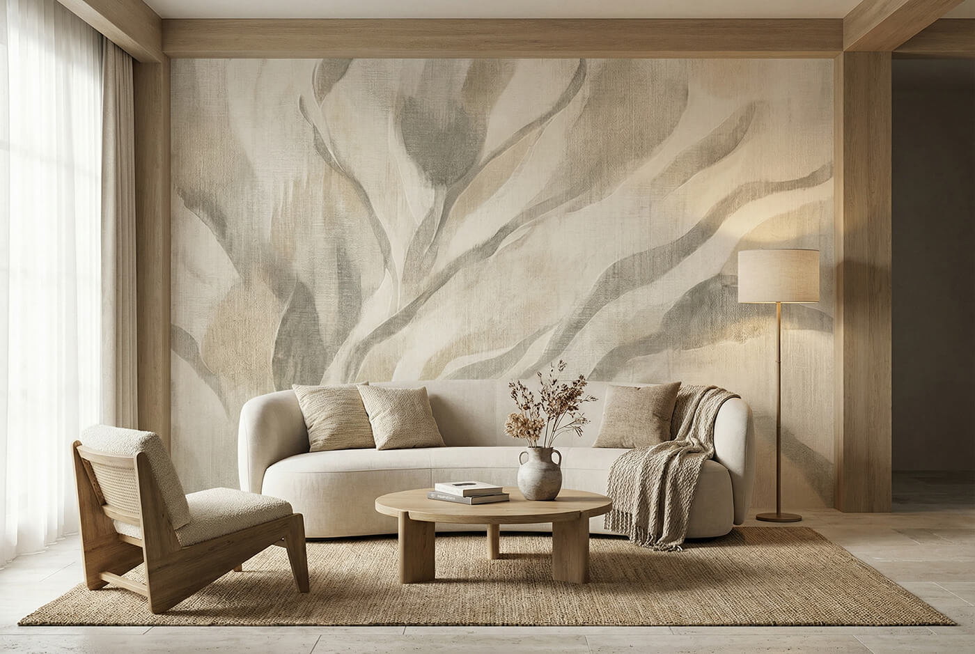 VELUM to fototapeta roślinna stworzona z myślą o wnętrzach, w których liczy się spokój, światło i naturalna równowaga. Delikatny, beżowy motyw roślinny buduje tło dla codziennego życia – nie dominuje, lecz porządkuje przestrzeń i wprowadza poczucie harmonii.