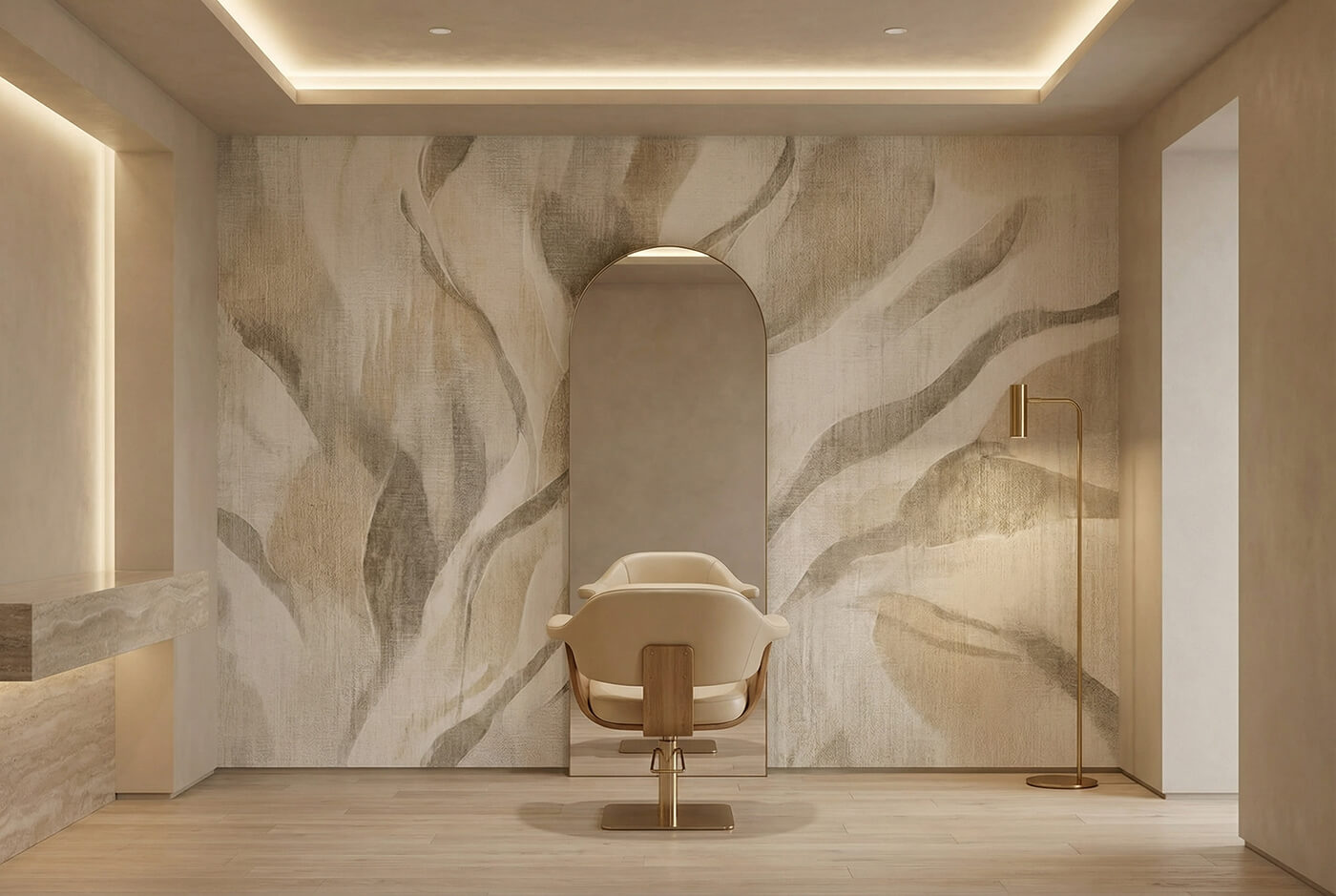 VELUM sprawdza się w salonach, sypialniach i przedpokojach, a także w wnętrzach usługowych: salonach fryzjerskich, gabinetach beauty oraz w strefach spa. Jej spokojna kolorystyka pasuje do drewna, kamienia, mikrocementu i naturalnych tkanin.