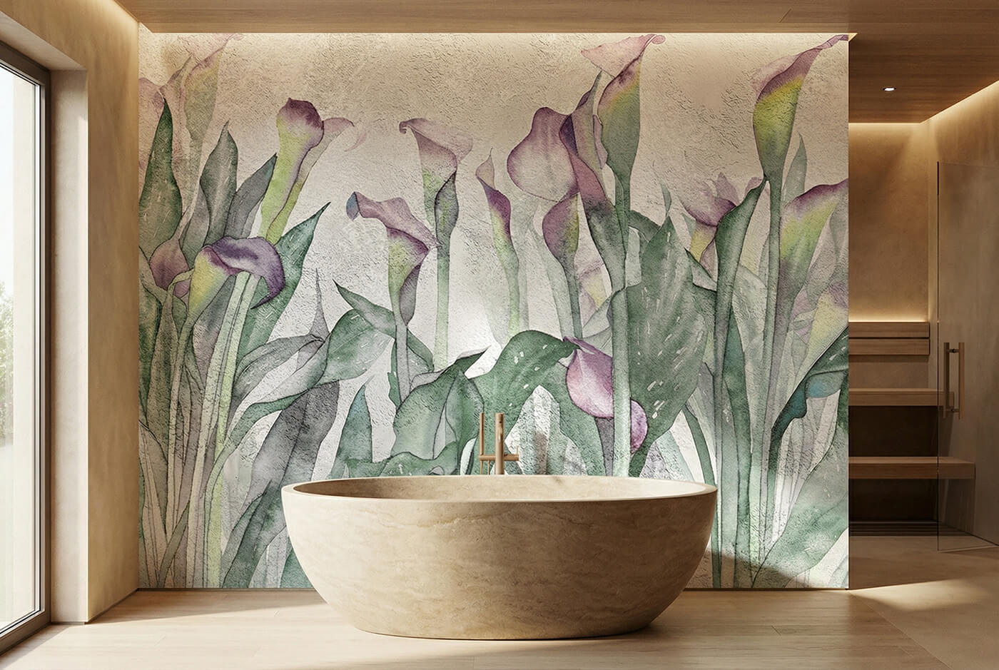Ta fototapeta do łazienki została zaprojektowana z myślą o przestrzeniach narażonych na wilgoć, parę wodną i bezpośredni kontakt z wodą. Delikatny, roślinny motyw tworzy spokojne, naturalne tło, które dobrze sprawdza się zarówno w nowoczesnych łazienkach, jak i w domowych strefach spa.