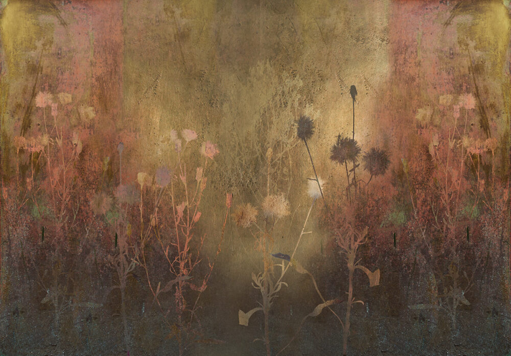 Inspirowana pięknem i bogactwem natury artystyczna fototapeta w delikatny kwiatowy wzór. Radosna, pełna pozytywnej energii grafika wielkoformatowa – święto światła i koloru. Ciepłe, południowe barwy, rozświetla dodatkowo metaliczny blask starego złota i miedzi, nadając aranżacji szlachetnego charakteru i wytworności. Grafika ścienna przenosi odbiorcę w gorące, zalane słońcem okolice morza śródziemnego. Ta niebanalna, nastrojowa, niemal buduarowa, fototapeta ścienna tworzy przytulny, intymny klimat we wnętrzu. Prezentowana grafika doskonale współgra zarówno z nowoczesnością, jak i z klasyką. Sprawdzi się w towarzystwie drewna, ratanu, cegły, bawełny, lnu, złota, miedzi, kamienia i szkła.  Jako mocny akcent aranżacji świetnie przełamuje biele, szarości, beże i czernie w pomieszczeniach. Idealna fototapeta do sypialni, salonu i jadalni.